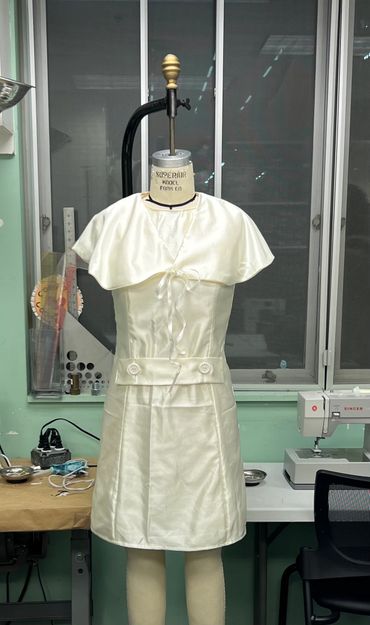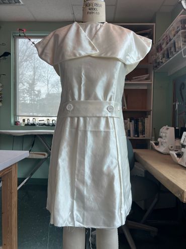 For this production, I crafted a silk organza Bolero with lace detailing. I also worked backstage helping with changes and doing the laundry.
